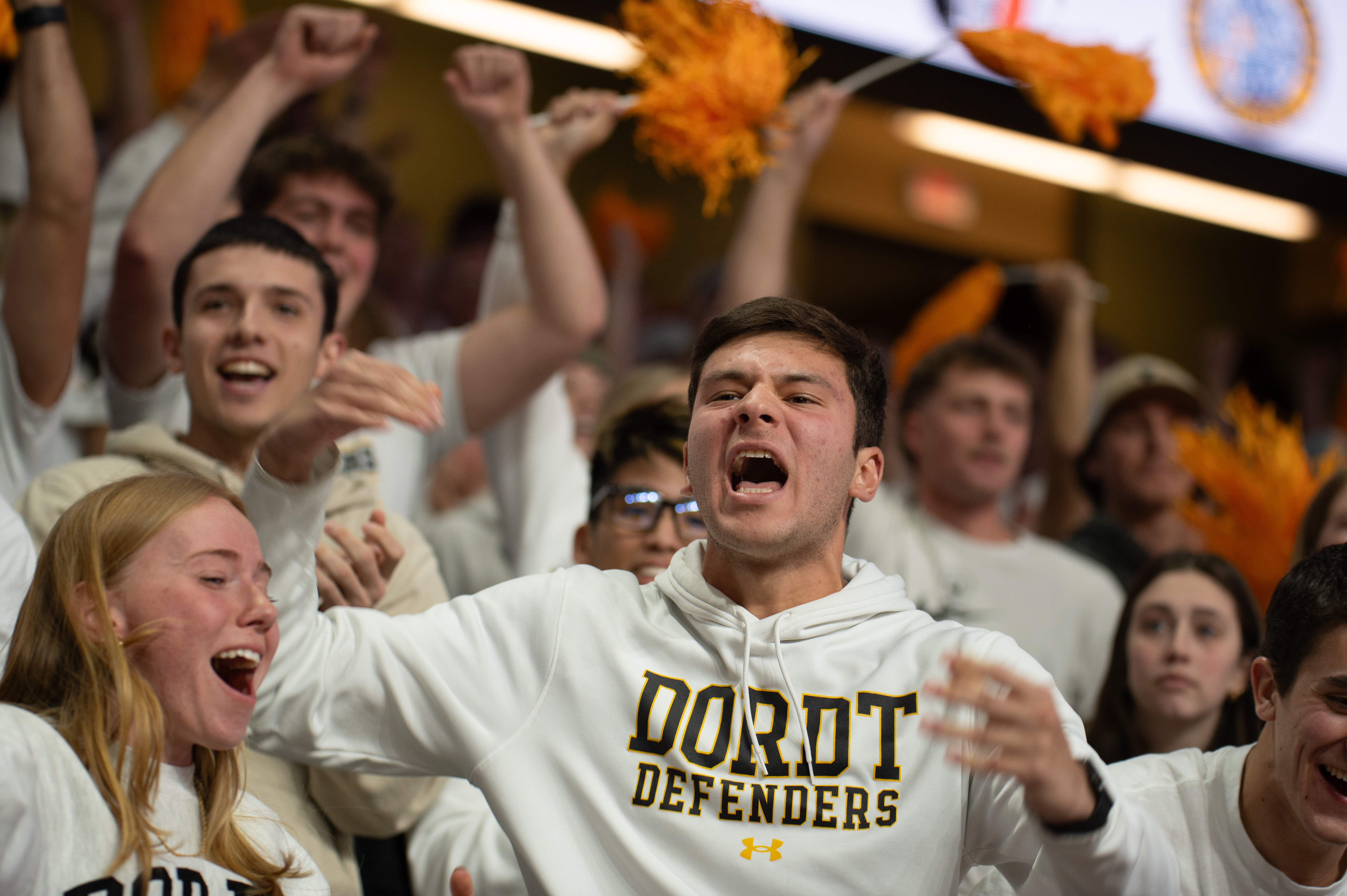 Following the national tournament win, Dordt officials surprised the women’s basketball team with a pizza party. Approximately 125 family members, coaches, athletes, faculty, students, and other Dordt supporters joined the women’s basketball team to celebrate.