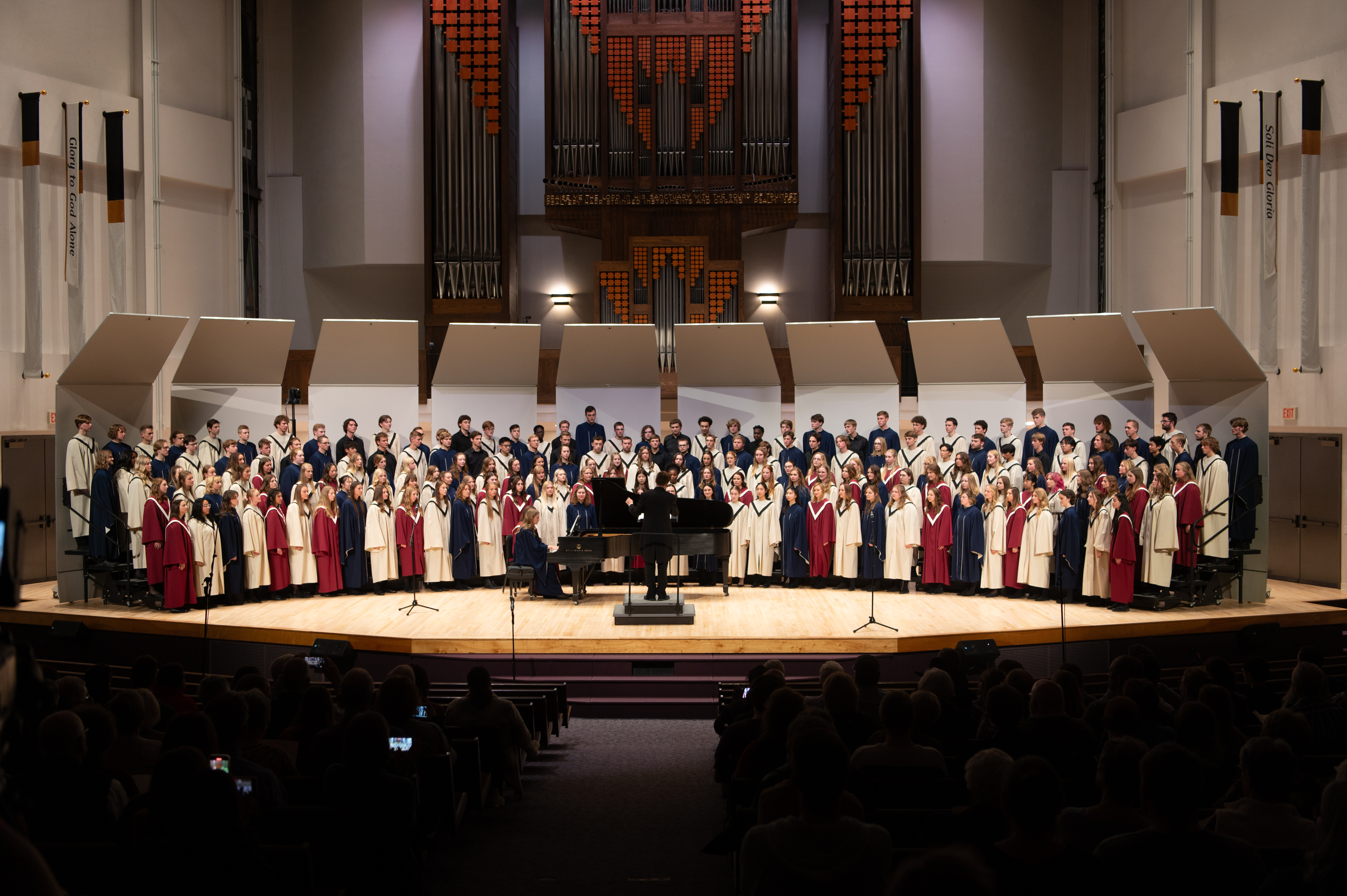 The evening continues with performances by four choral ensembles—Bella Voce, Canons of Dordt, Chorale, and Concert Choir—conducted by Dr. Carrie Groenewold, Tim Van Voorst, and Dr. Ryan Smit. These performances will focus on themes of joy, peace, praise, and community.