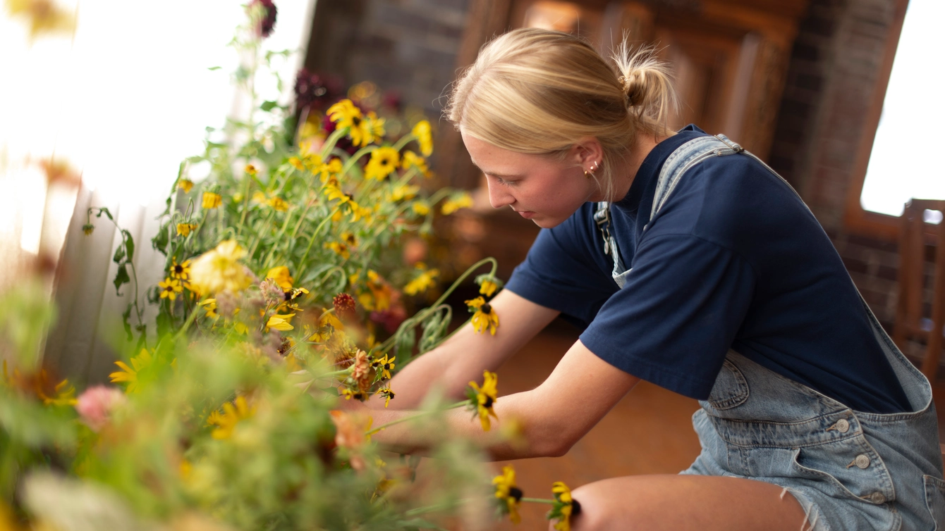 As Katy Timmer started her senior year at Dordt University, she wanted to find a way to connect her floral experience and her graphic design degree. Her senior art show, “Better Homes and Gardens: A Floral & Feasting Senior Art Exhibit Pointing to the New Creation,” gives her the chance to do this.