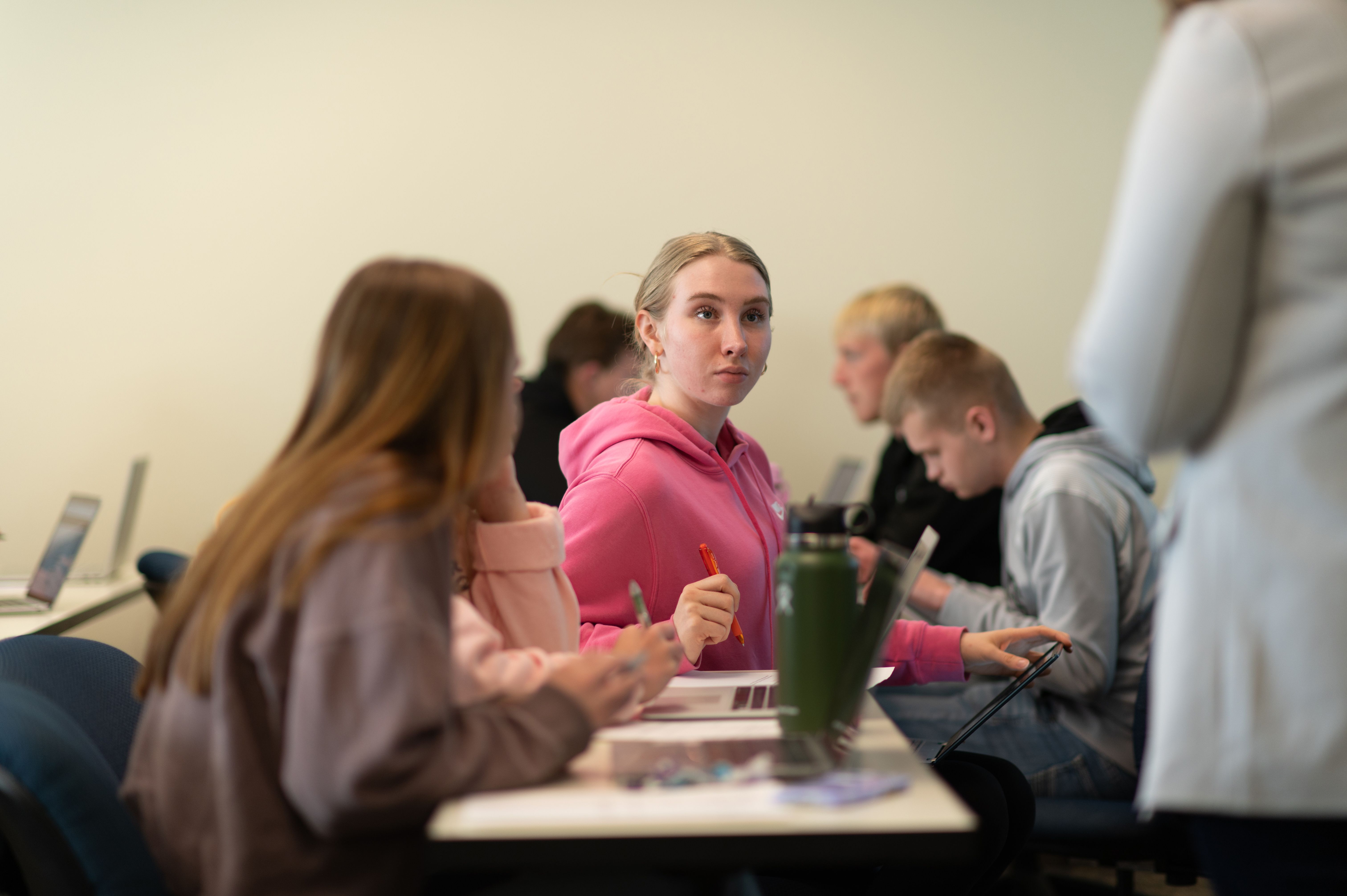 Joya Breems, a senior community development major, appreciates being able to talk about the Reformed perspective of sphere sovereignty.