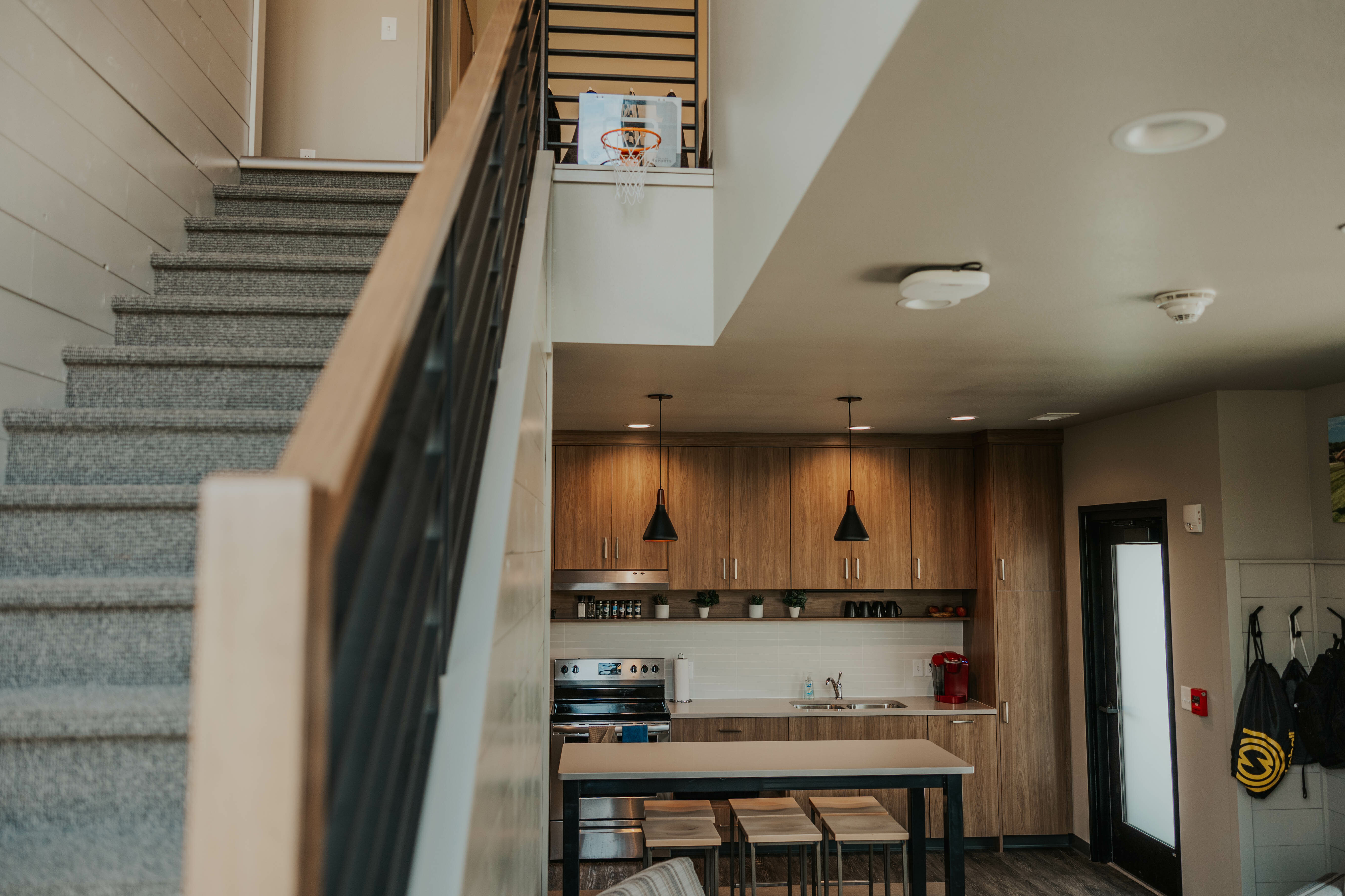 The Townhomes have a modern, split-level design that has large windows which admit plenty of natural light and a large open floorplan that provides extensive space to entertain guests. The Townhomes uniquely blend campus life with community, allowing students to feel like a part of both the Dordt and Sioux Center communities.