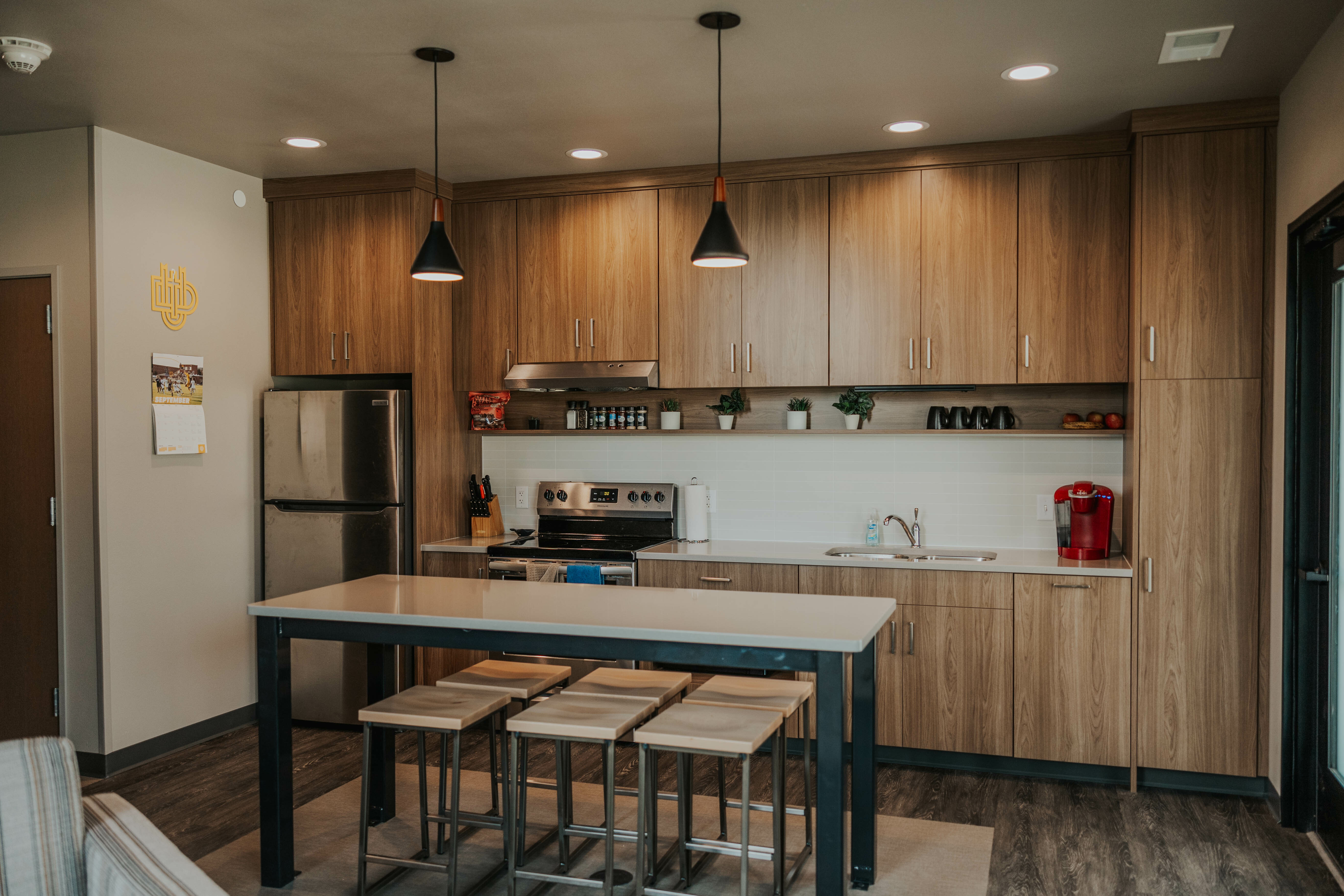 Designed with student input, each apartment features a wall of windows that allows for lots of natural light. The open floor concept and modern characteristics make The Squares a place that feels like home.